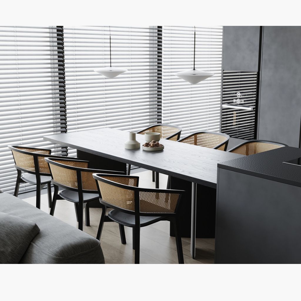 シンプルでありながら確かな強さを備えたデザインは、個人邸のダイニングはもちろん、ホテルや飲食店など多彩な空間に自然と溶け込みます。