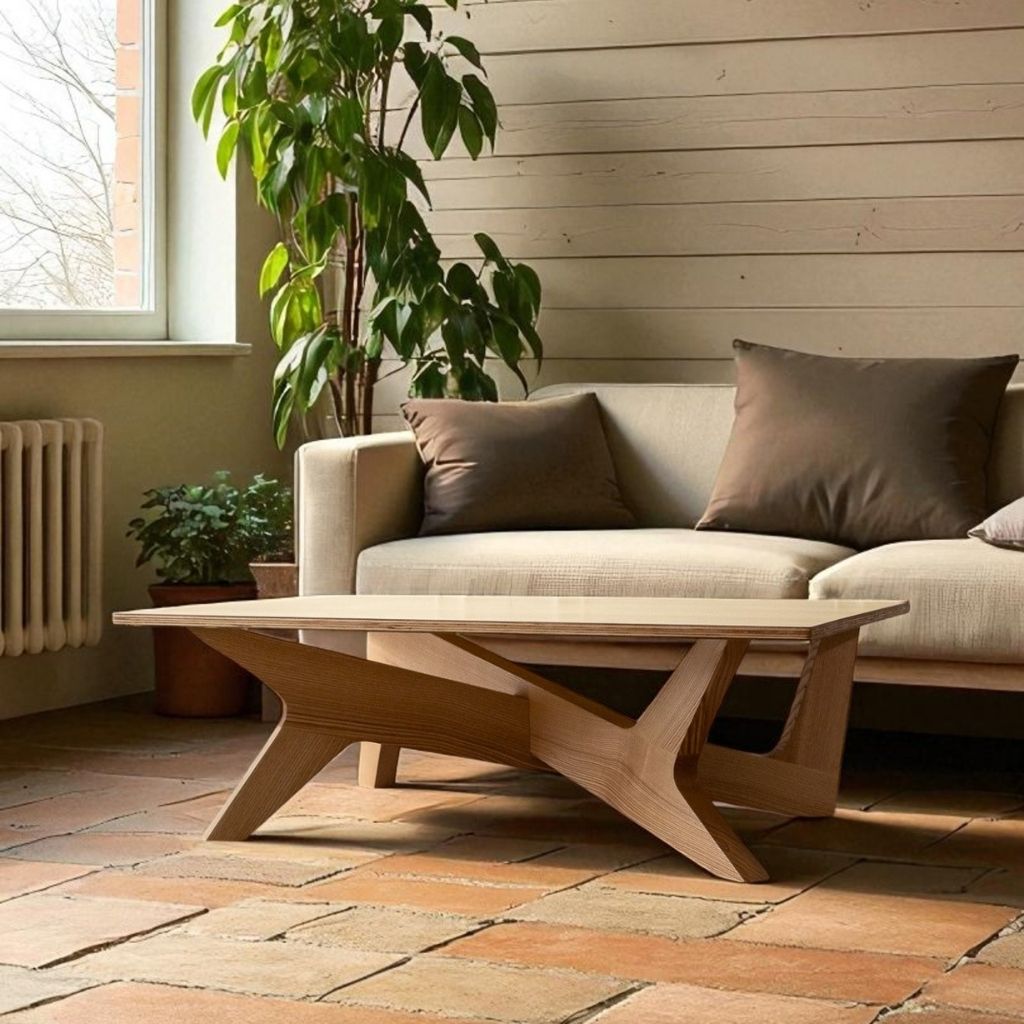 Cross Coffee Table Wood-Top Natural / クロスコーヒーテーブル 木製天板 ナチュラル